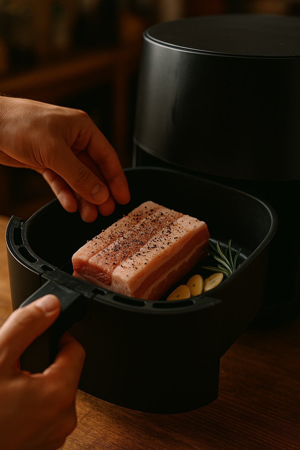 오늘은 에어프라이어 하나만 있으면 완성되는 ‘겉바속촉 통삼겹구이’ 레시피를 소개할게요.