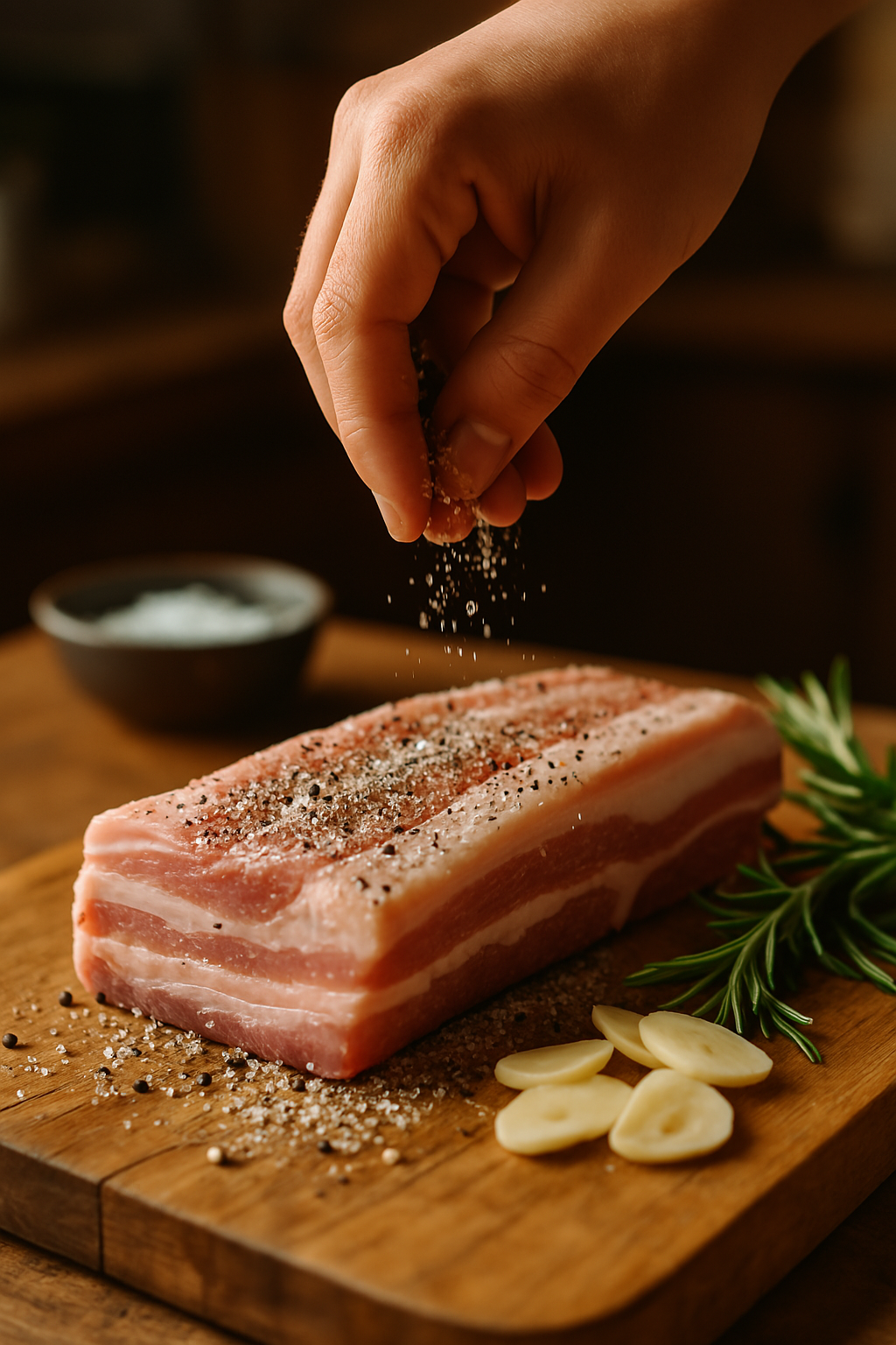 - 껍질 있는 통삼겹을 쓰면 겉바속촉 극대화 가능